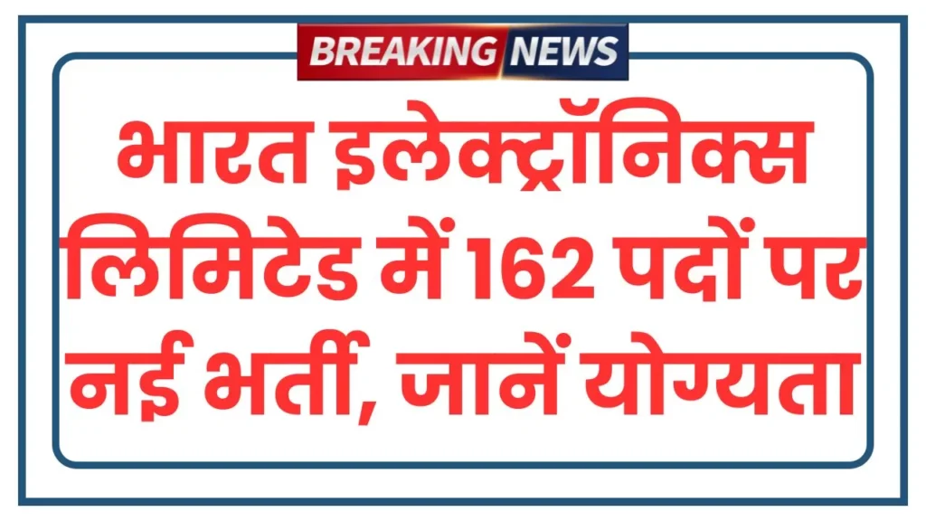 BEL Jobs 2025: भारत इलेक्ट्रॉनिक्स लिमिटेड में 162 पदों पर नई भर्ती, जानें योग्यता