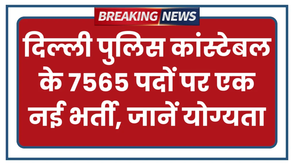 दिल्ली पुलिस में नौकरी का सपना रखने वाले युवाओं के लिए यह सुनहरा मौका है, जहां 7565 रिक्त पदों को भरने के लिए आवेदन फॉर्म भरे जाने शुरू हो चुके हैं। इस भर्ती प्रक्रिया के लिए पुरुष और महिला दोनों उम्मीदवार अपना आवेदन फॉर्म भर सकते हैं। उम्मीदवार आवेदन फॉर्म भरने के लिए समय सीमा का ध्यान रखते हुए अपना आवेदन अवश्य भर दें।
